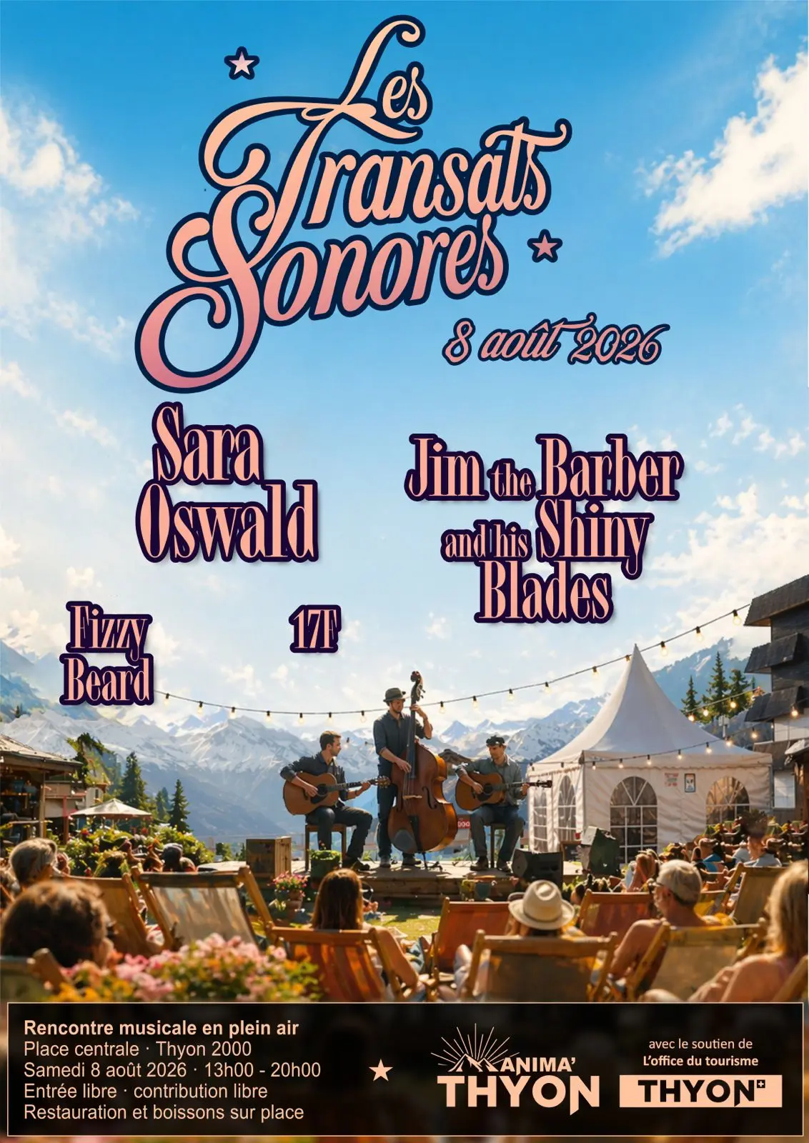Festival en plein air au coeur de Thyon 2000 le 8 août ? Venez nombreux de 13h à 20h pour profiter des différents groupes de musique