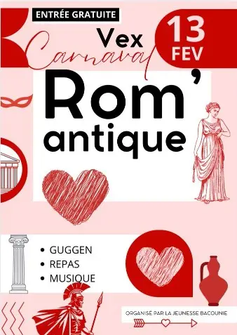 Le mardi 13 février aura lieu le carnaval de Vex, sur le thème Rom'antique.